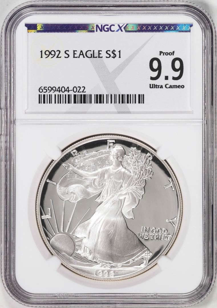 One 1992-S $1 Proof American Silver Eagle NGCX Proof 9.9 Ultra Cameo. NGC Certified.