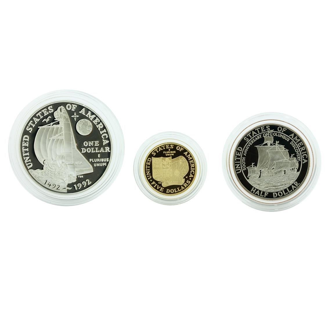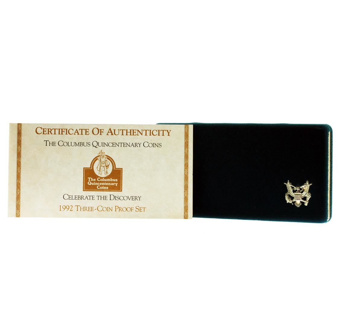 One 1992 US Mint Columbus Quincentenary (3) Proof Coins Set.