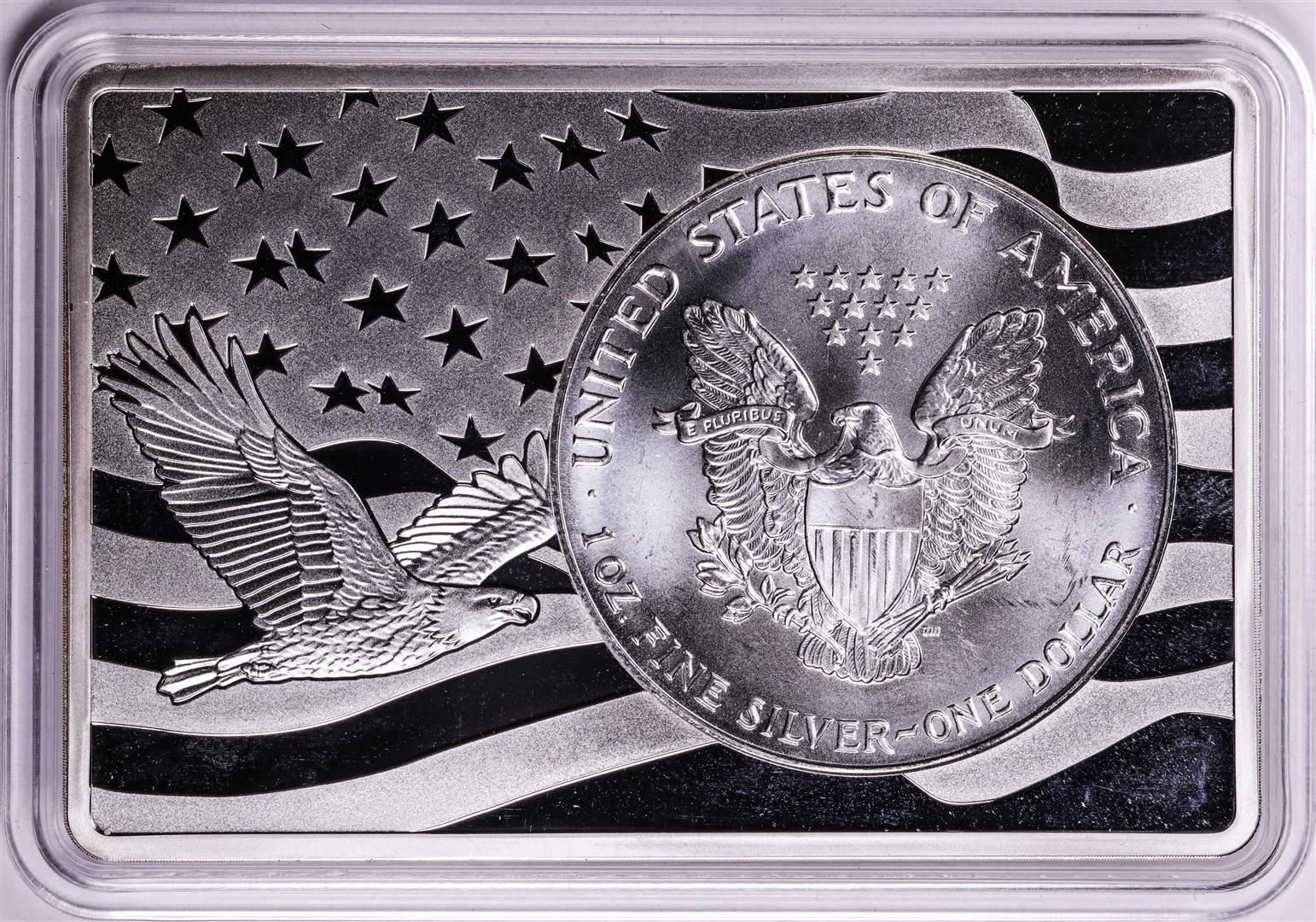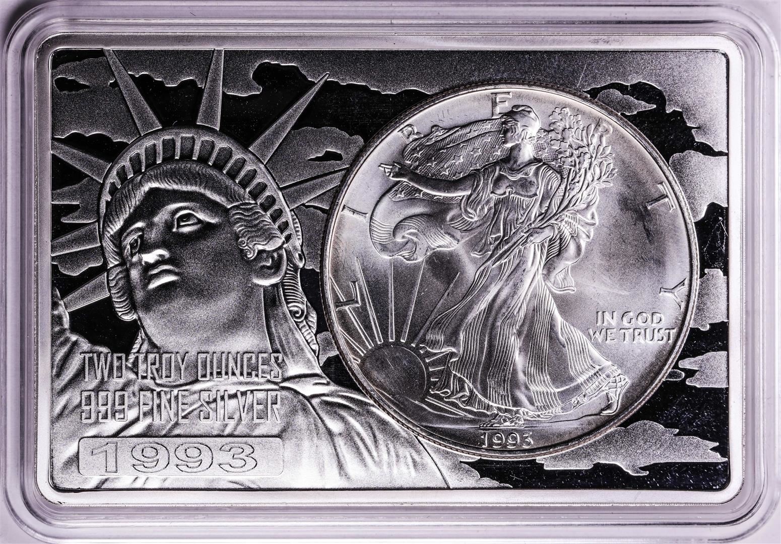 One 1993 $1 American Silver Eagle Coin & 2oz Silver Bar Set.