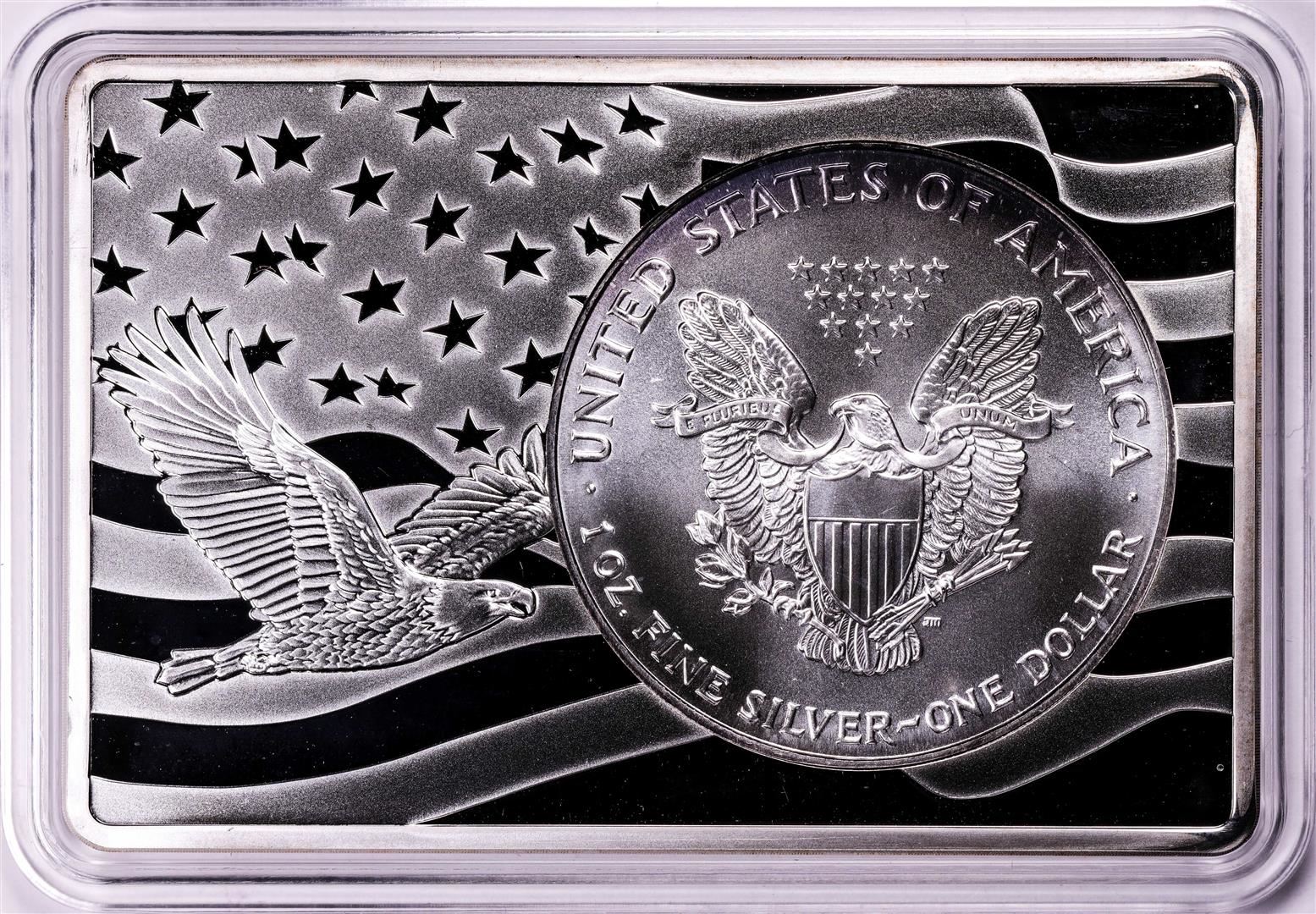 One 1993 $1 American Silver Eagle Coin & 2oz Silver Bar Set.