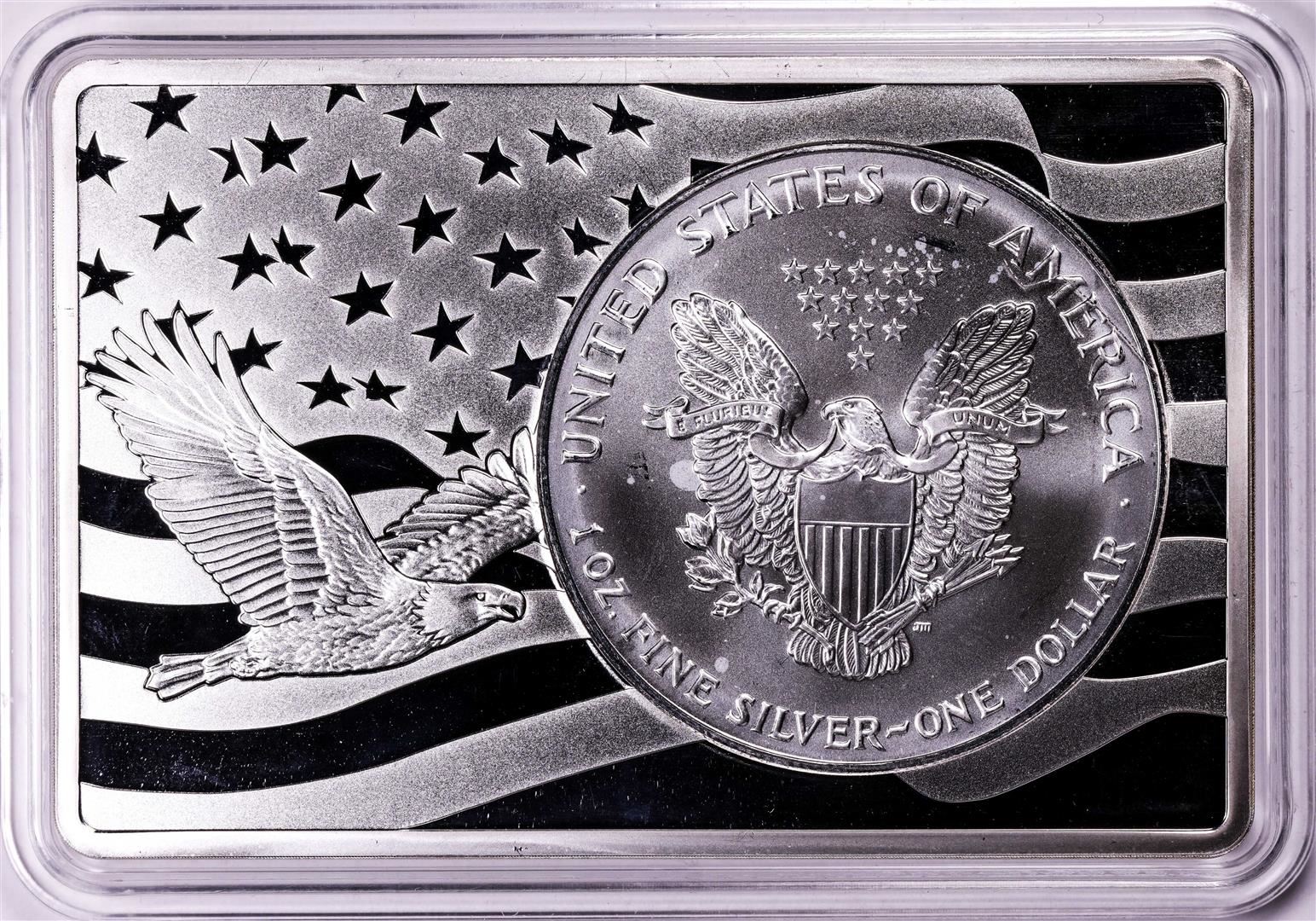 One 1993 $1 American Silver Eagle Coin & 2oz Silver Bar Set.