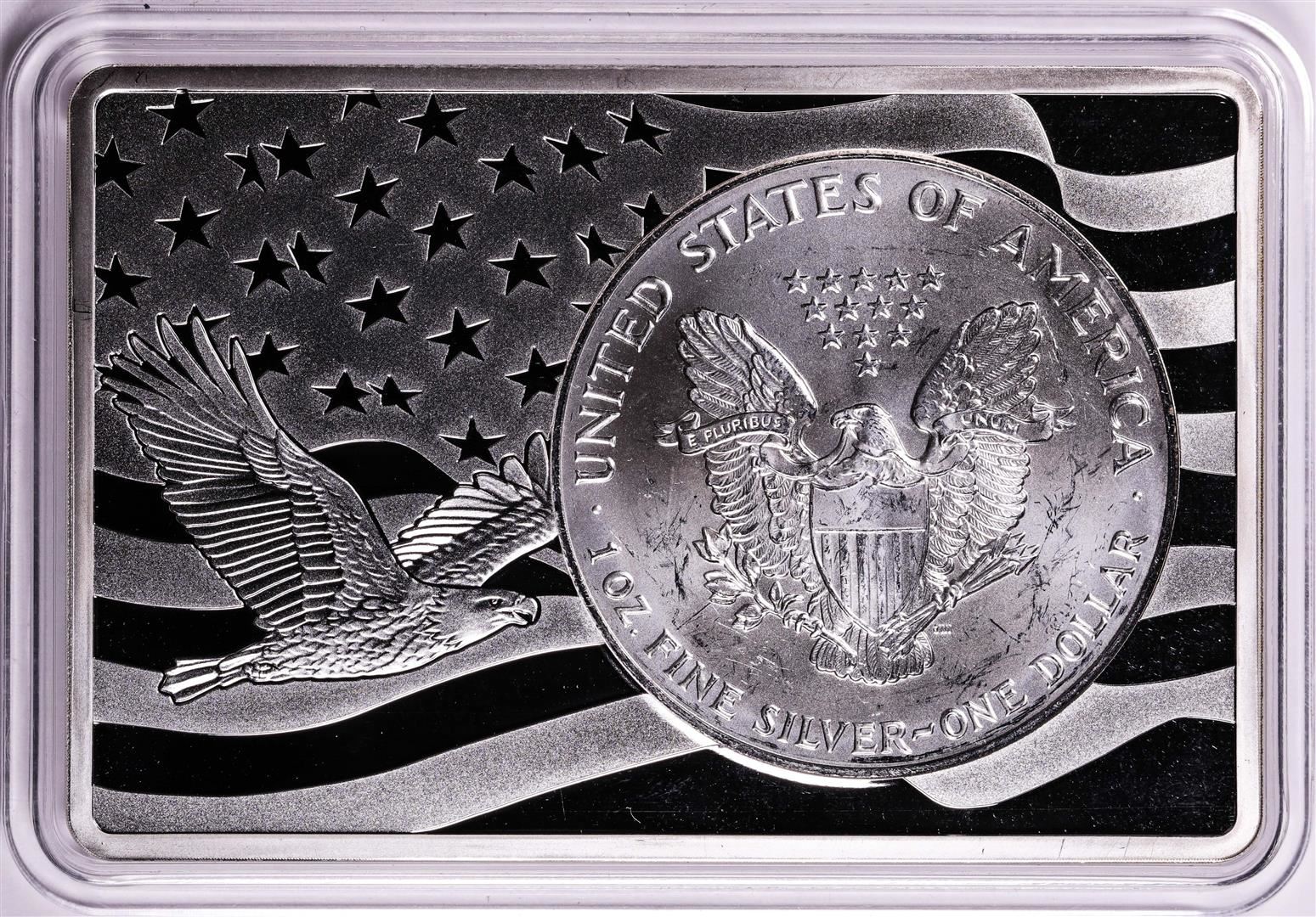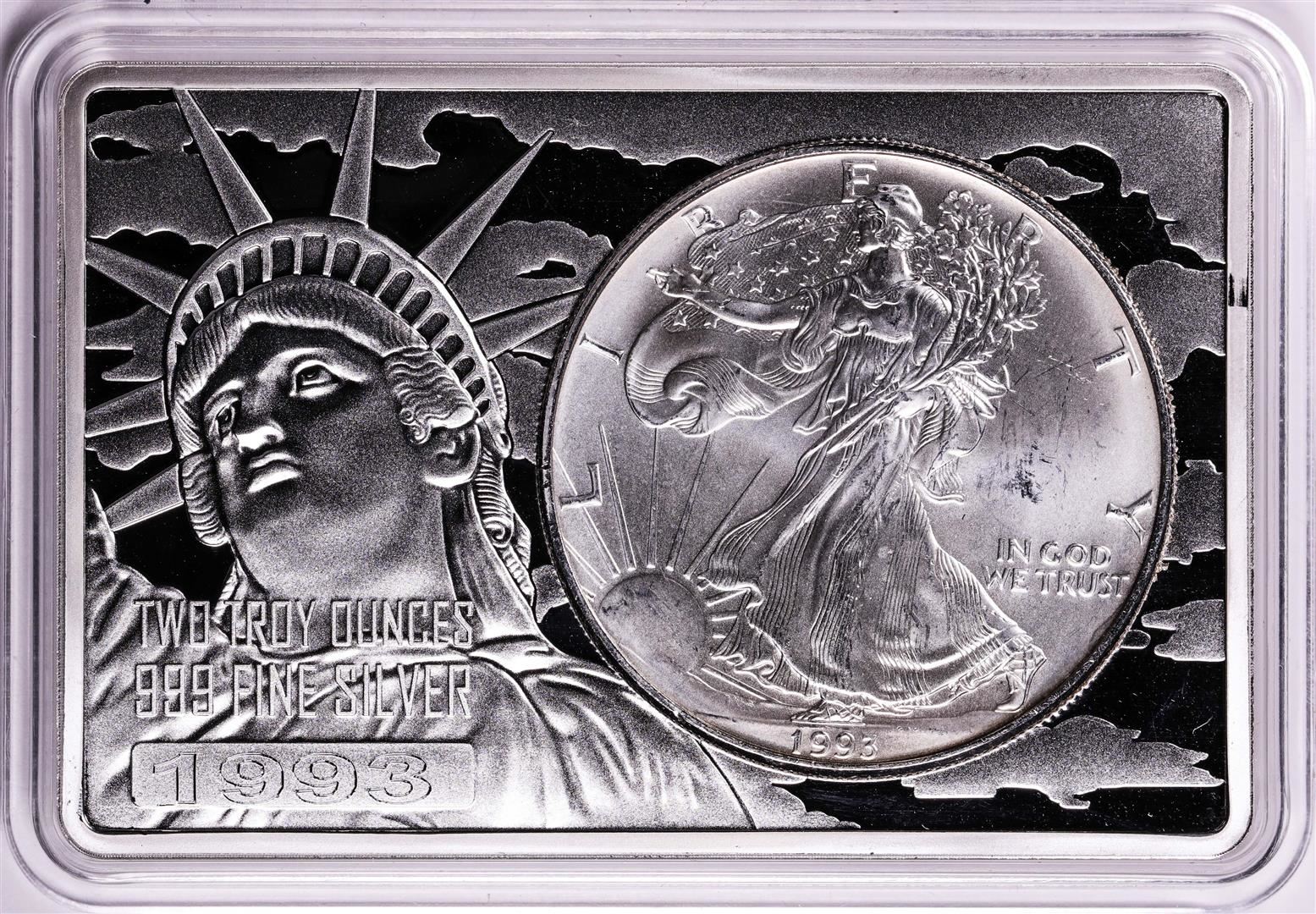 One 1993 $1 American Silver Eagle Coin & 2oz Silver Bar Set.