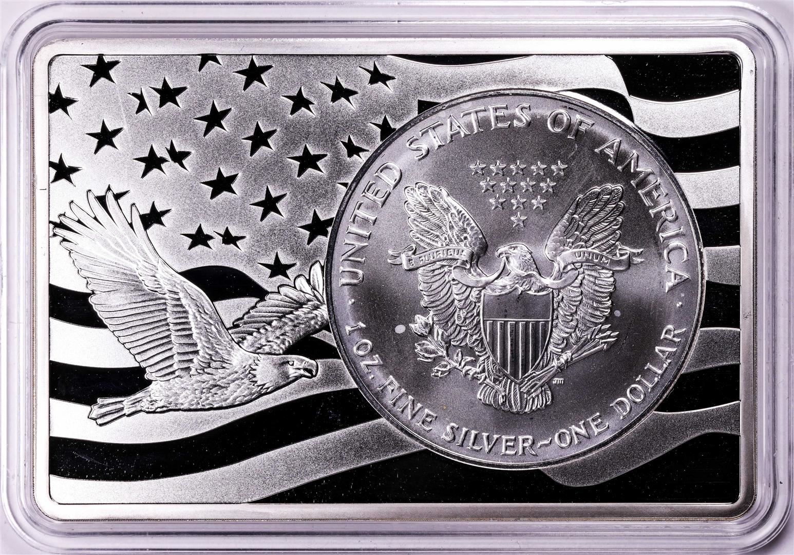 One 1993 $1 American Silver Eagle Coin & 2oz Silver Bar Set.