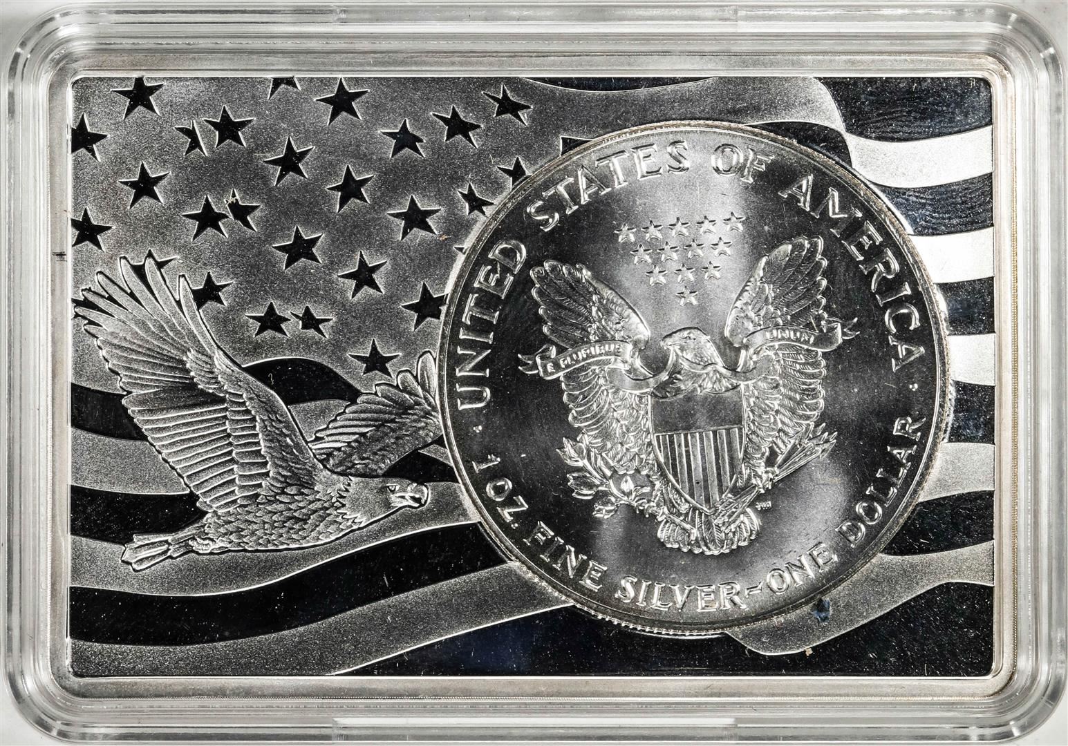 One 1993 $1 American Silver Eagle Coin & 2oz Silver Bar Set.