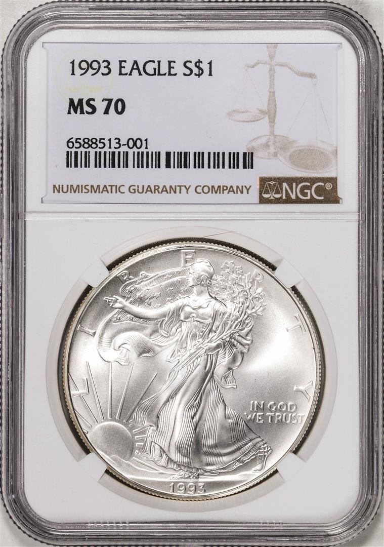 One 1993 $1 American Silver Eagle Coin NGC MS70. NGC Certified.