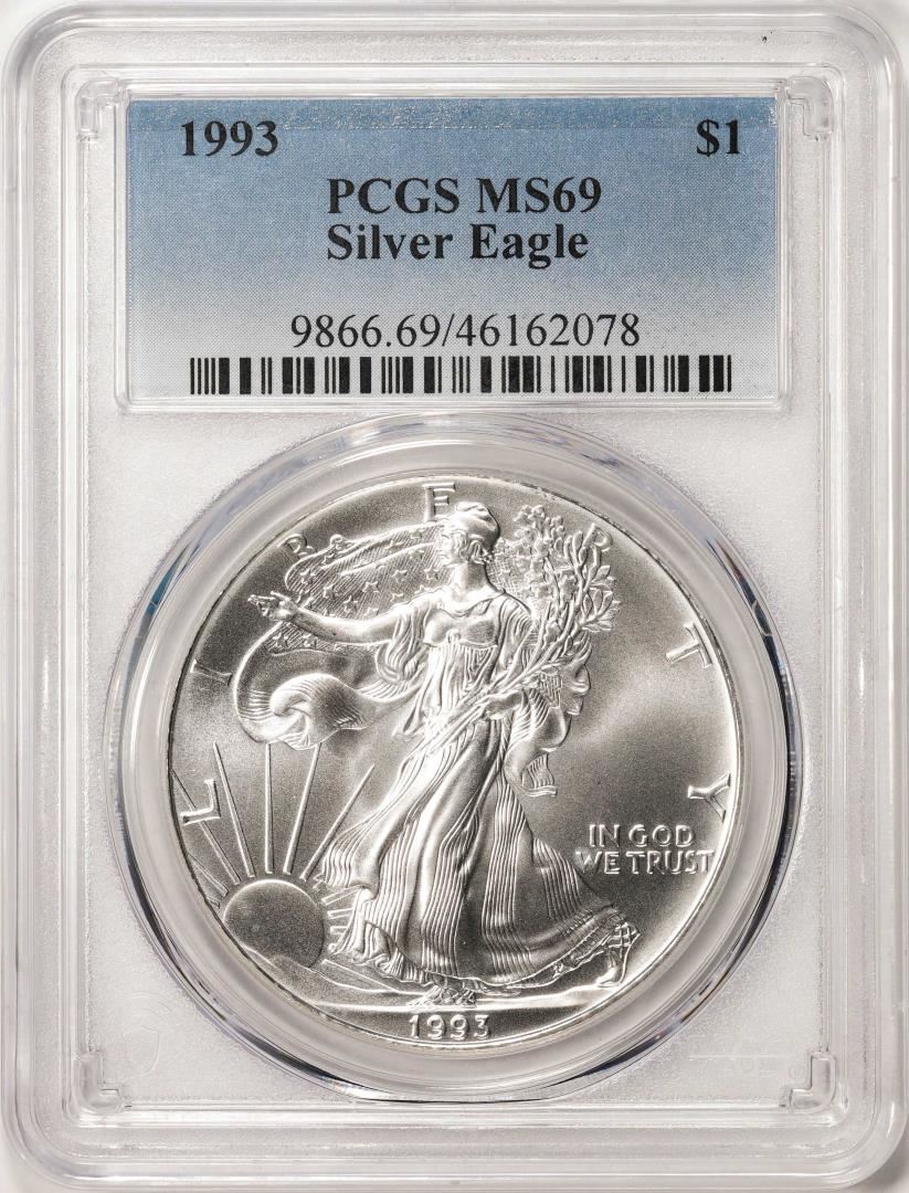 One 1993 $1 American Silver Eagle Coin PCGS MS69. PCGS Graded.