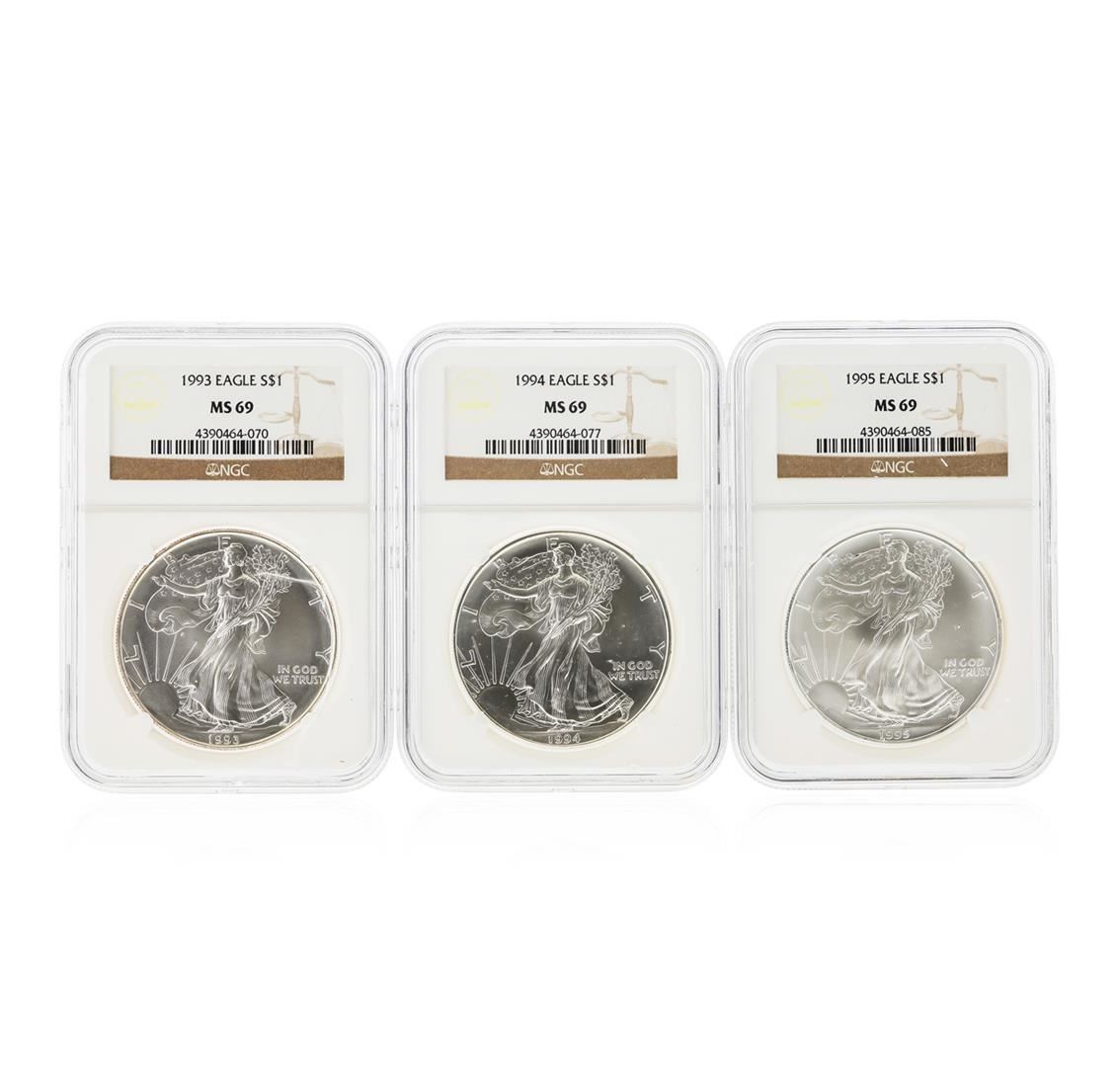 One 1993-1995 $1 American Silver Eagle Coin Set NGC MS69. NGC Certified.