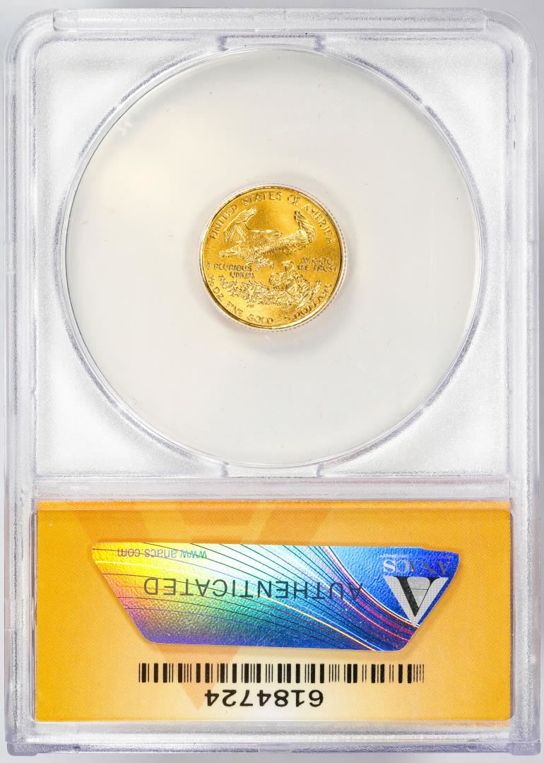 One 1993 $5 American Gold Eagle Coin ANACS MS70. ANACS Certified.