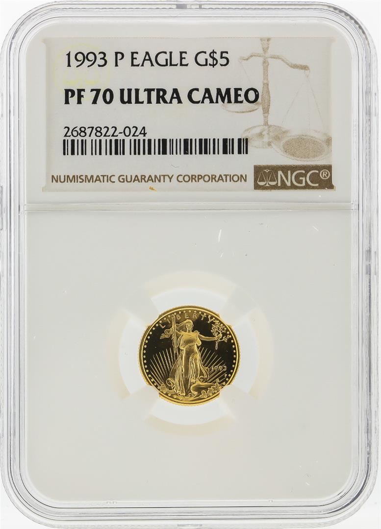 One 1993 $5 American Gold Eagle Coin NGC Graded PF70 Ultra Cameo. NGC Certified.