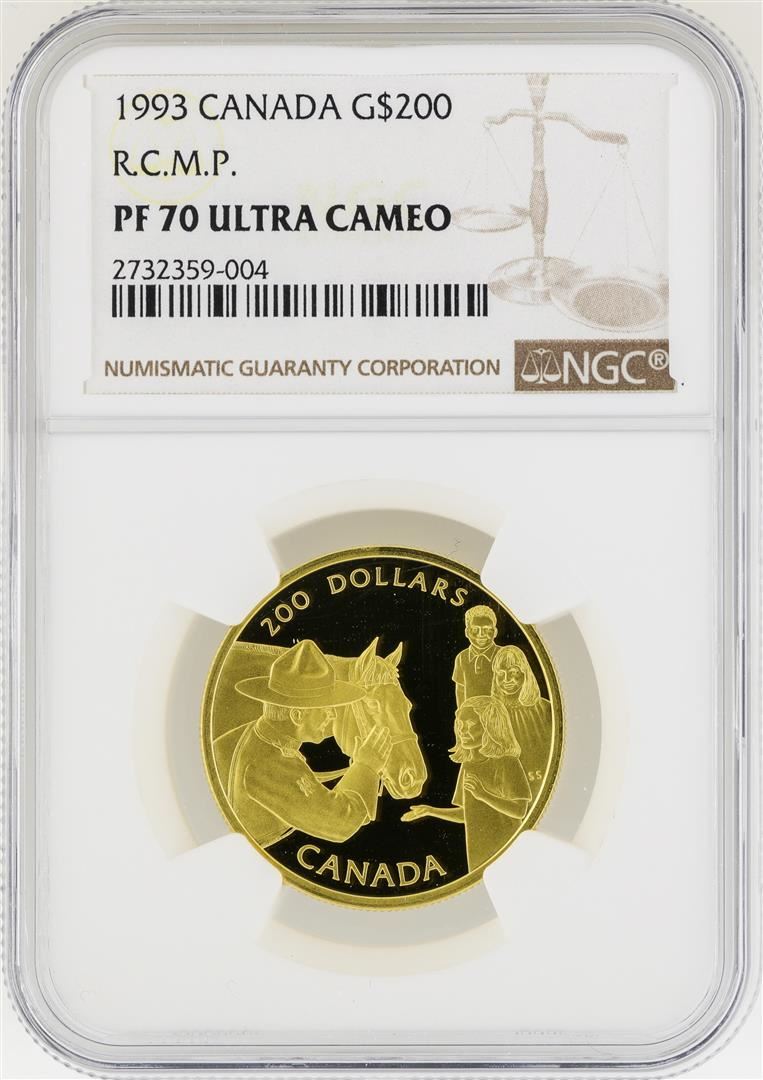 One 1993 Canada $200 R.C.M.P. Gold Coin NGC PF70 Ultra Cameo. NGC Certified.
