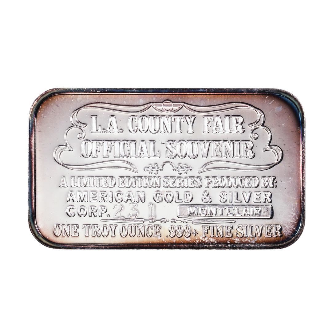 One 1993 L.A. County Fair Montclair, CA Limited Edition 1oz .999 Fine Silver Art Bar.