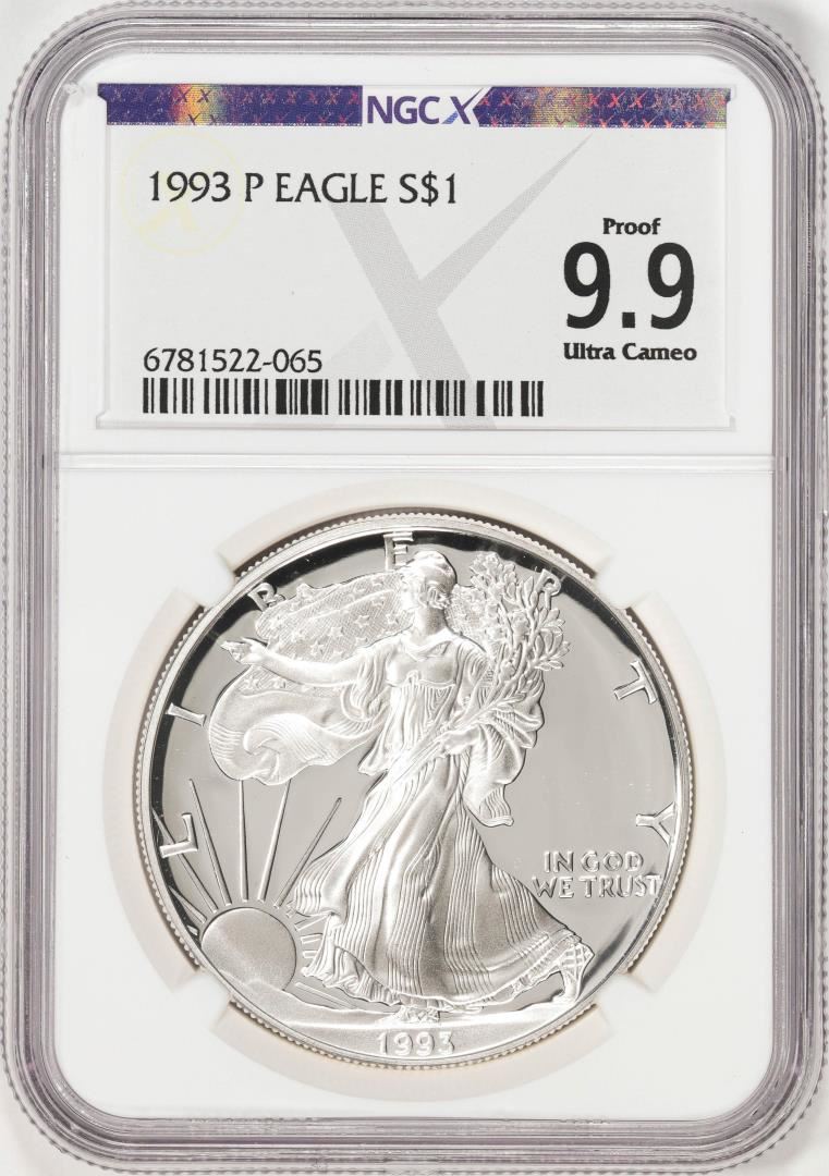 One 1993-P $1 American Silver Eagle Coin NGCX Proof 9.9 Ultra Cameo. NGC Certified.