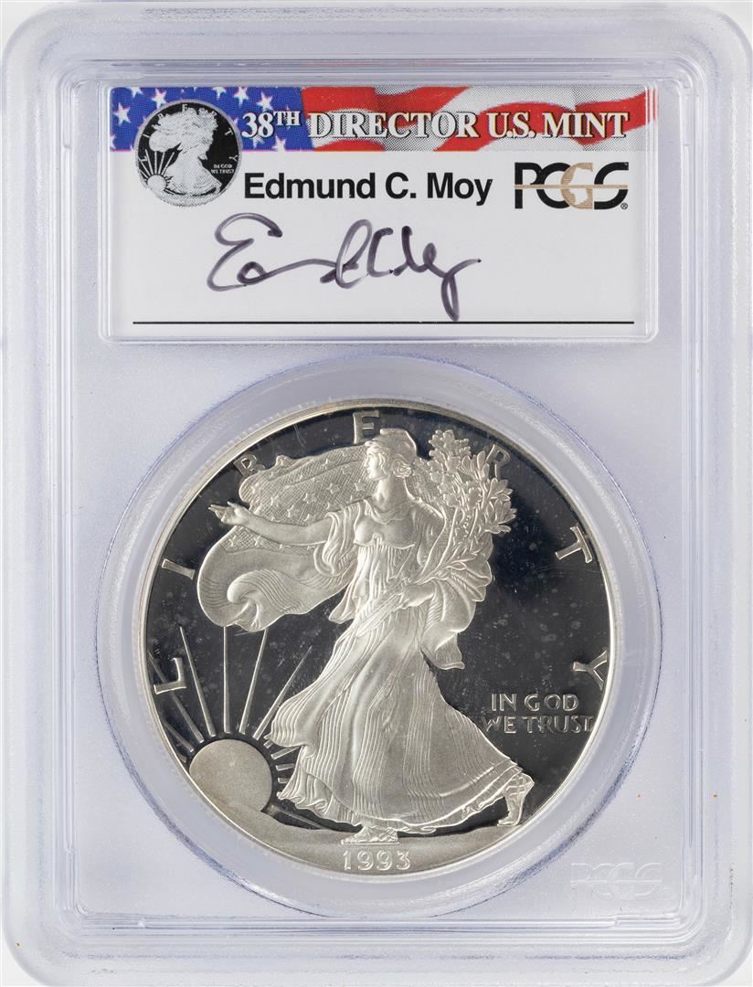 1993-P $1 Proof American Silver Eagle Coin PCGS PR69DCAM Moy Signature