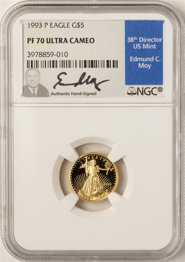 1993-P $5 American Gold Eagle Proof Coin NGC PF70 W/Edmund C. Moy Signature