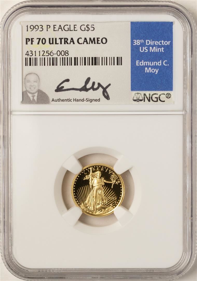 1993-P $5 American Gold Eagle Proof Coin NGC PF70 W/Edmund C. Moy Signature