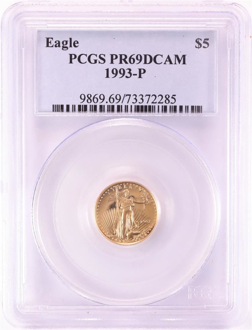 One 1993-P $5 Proof American Gold Eagle Coin PCGS PR69DCAM. PCGS Graded.