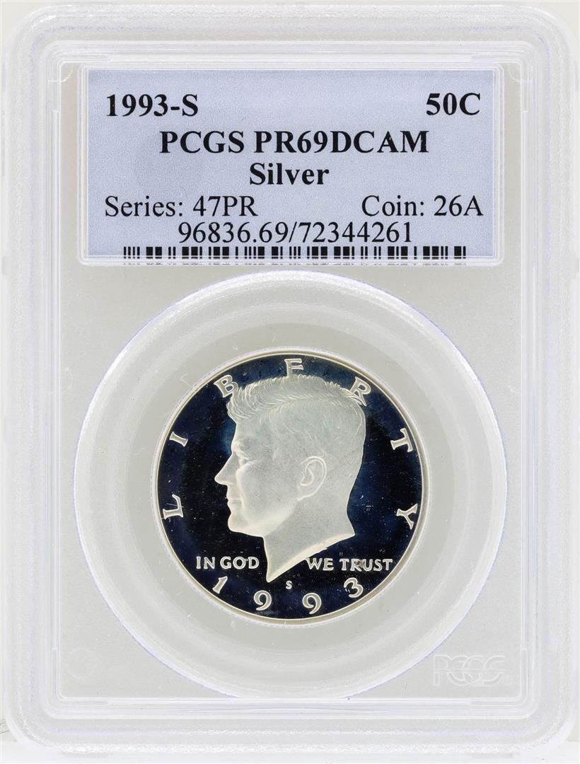 One 1993-S Kennedy Silver Half Dollar Coin PCGS PR69DCAM. PCGS Graded.