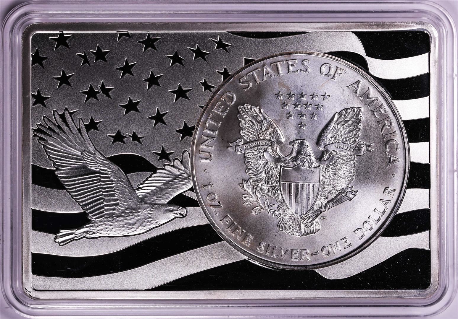 One 1994 $1 American Silver Eagle Coin & 2oz Silver Bar Set.