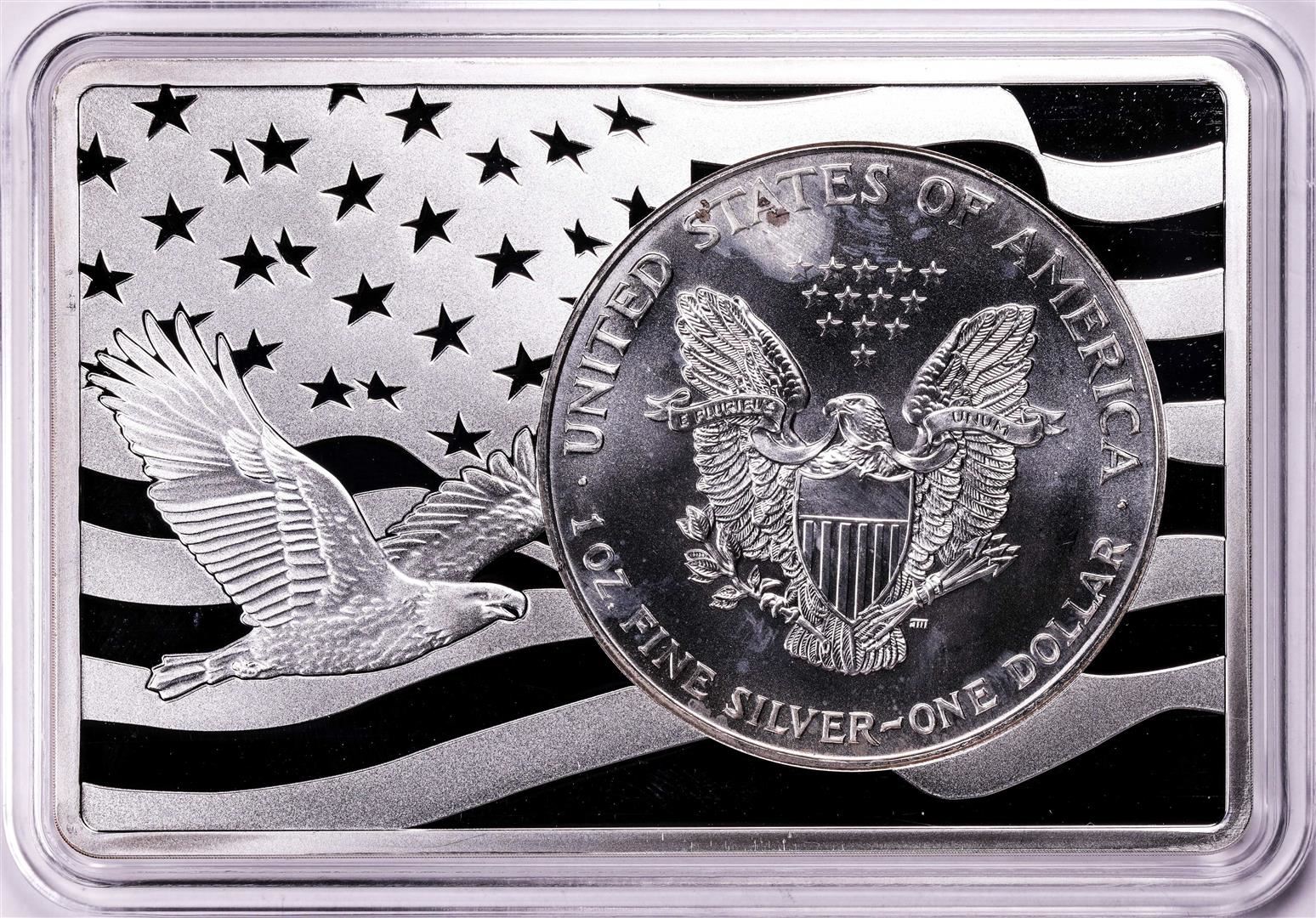 One 1994 $1 American Silver Eagle Coin & 2oz Silver Bar Set.