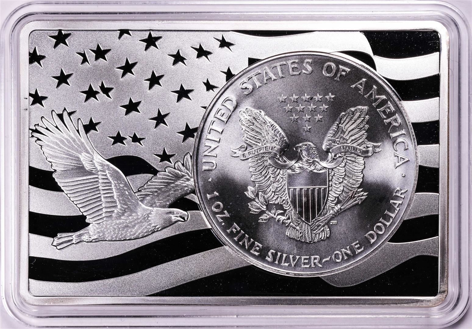One 1994 $1 American Silver Eagle Coin & 2oz Silver Bar Set.