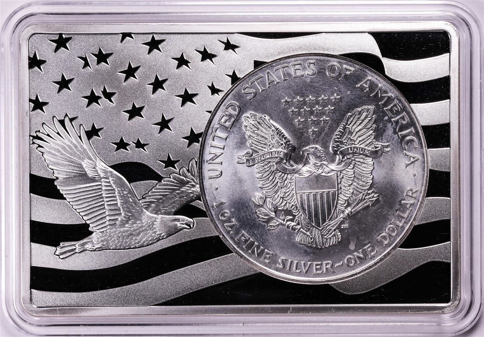One 1994 $1 American Silver Eagle Coin & 2oz Silver Bar Set.