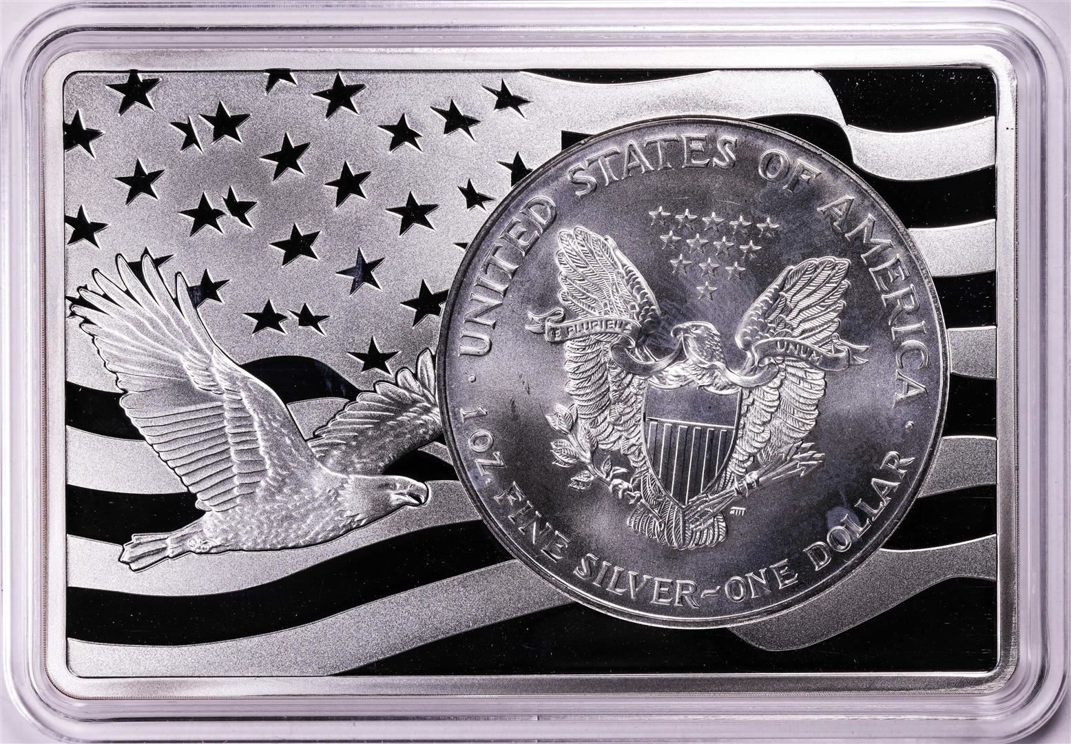 One 1994 $1 American Silver Eagle Coin & 2oz Silver Bar Set.