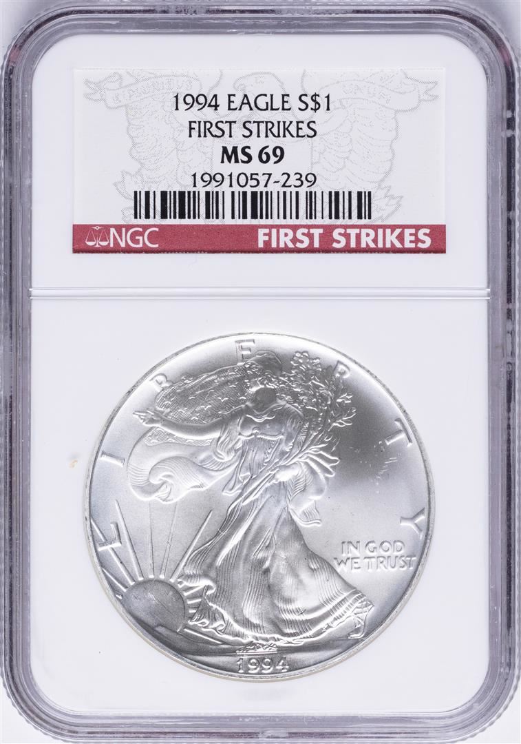 1994 $1 American Silver Eagle Coin NGC MS69 First Strikes