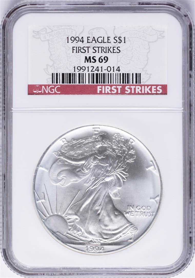 1994 $1 American Silver Eagle Coin NGC MS69 First Strikes