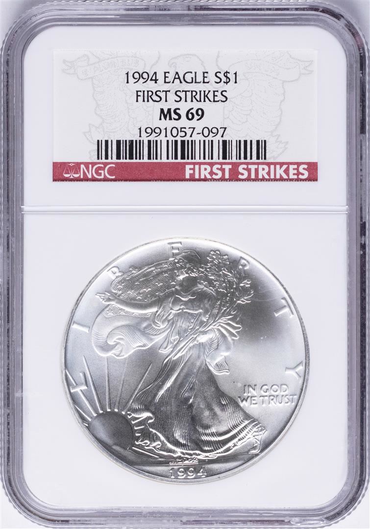 1994 $1 American Silver Eagle Coin NGC MS69 First Strikes