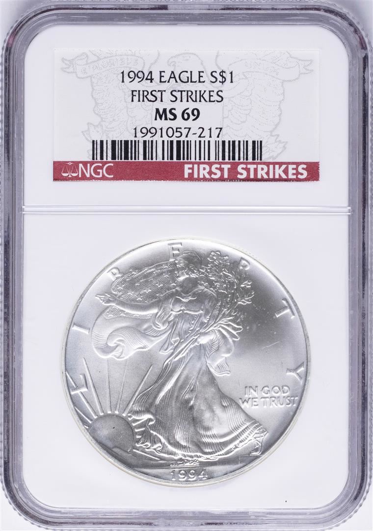 1994 $1 American Silver Eagle Coin NGC MS69 First Strikes