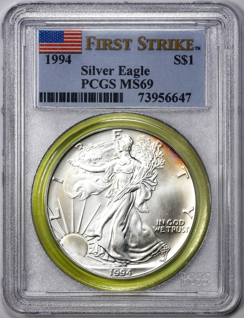 1994 $1 American Silver Eagle Coin PCGS MS69 First Strike