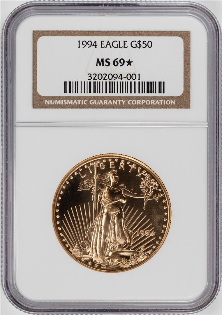 One 1994 $50 American Gold Eagle Coin NGC MS69 STAR Key Date. NGC Certified.