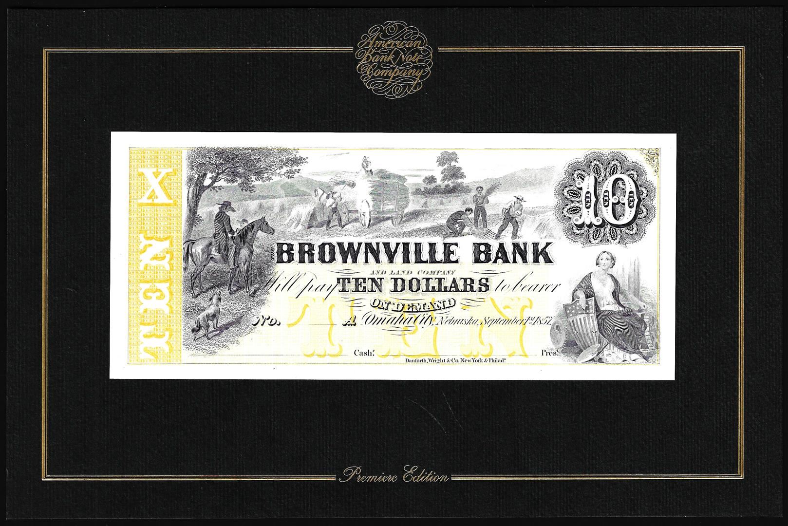 One 1994 American Bank Note Company Intaglio Print Brownville Bank and Land Company, NE.