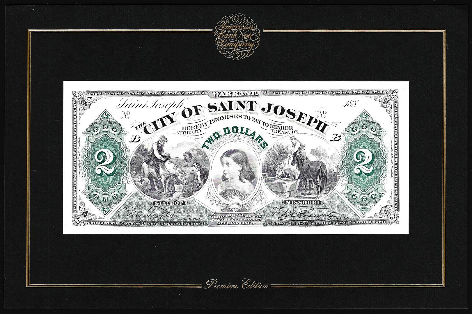 1994 American Bank Note Company Intaglio Print City of Saint Joseph, MO