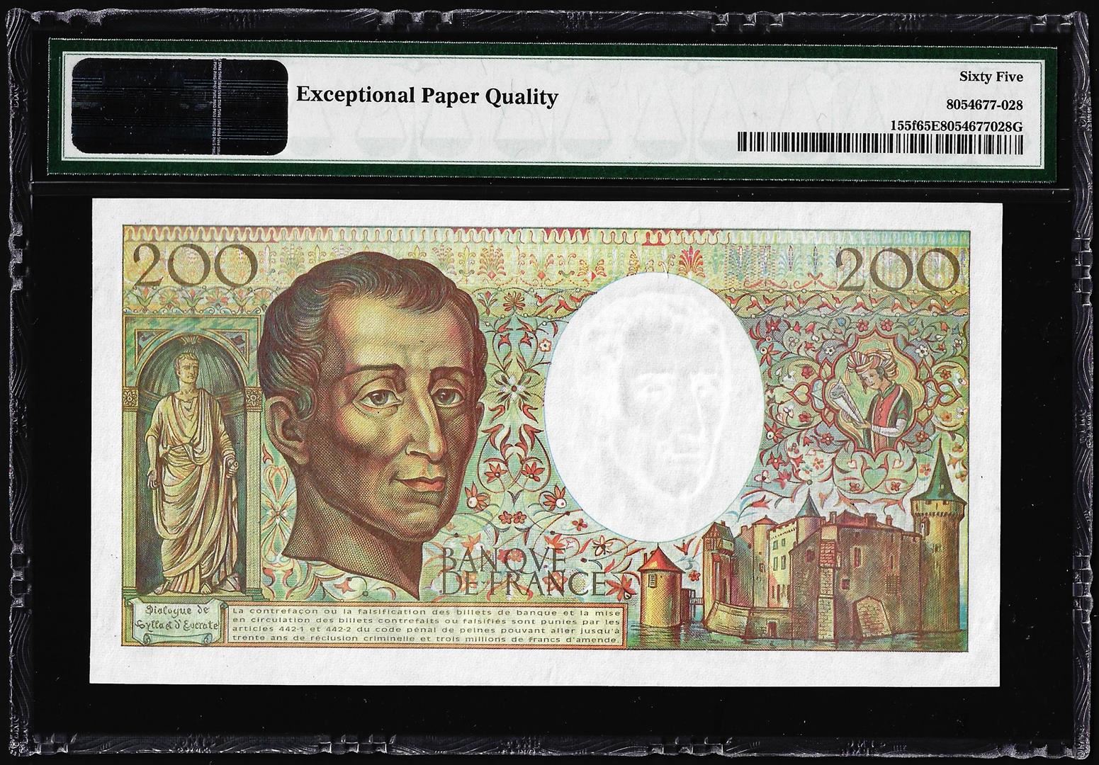 1994 France Banque de France 200 Francs Note Pick# 155f PMG Gem Uncirculated 65EPQ