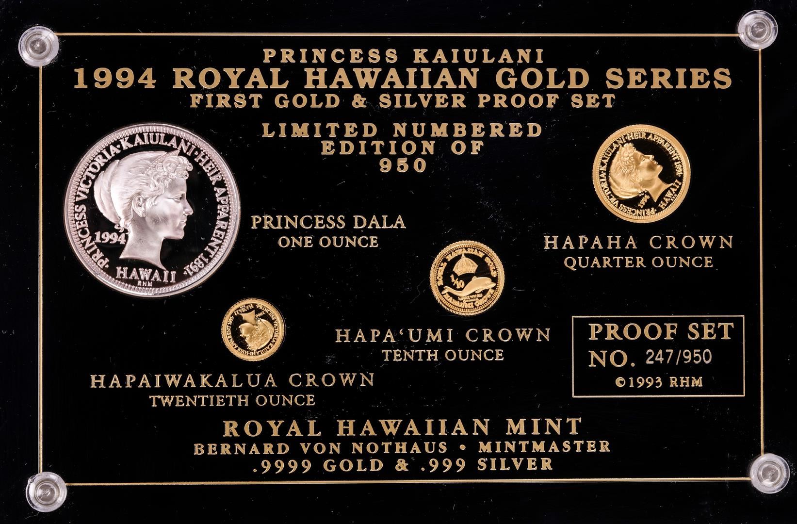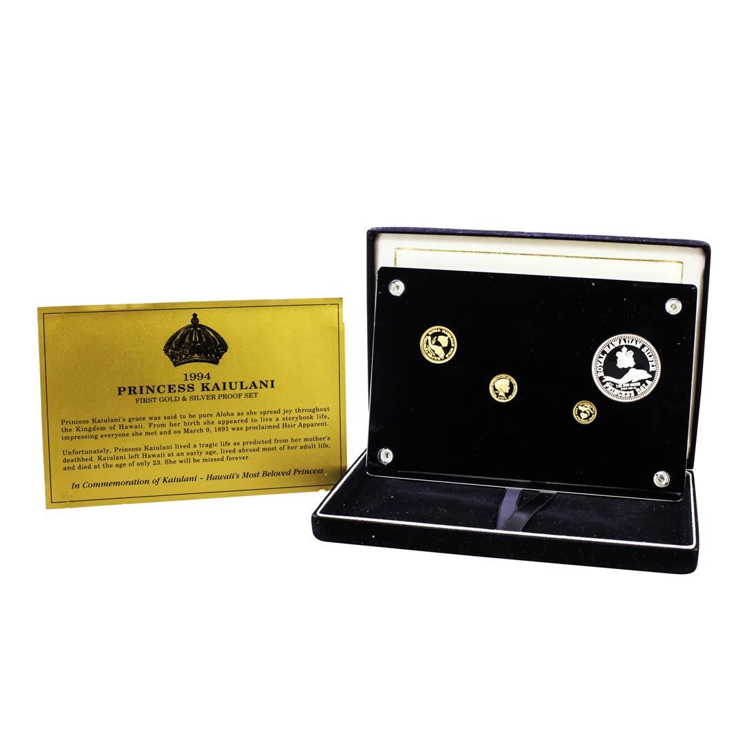 One 1994 Royal Hawaiian Gold Series Commemorative (4) Coin Set with Box & COA.