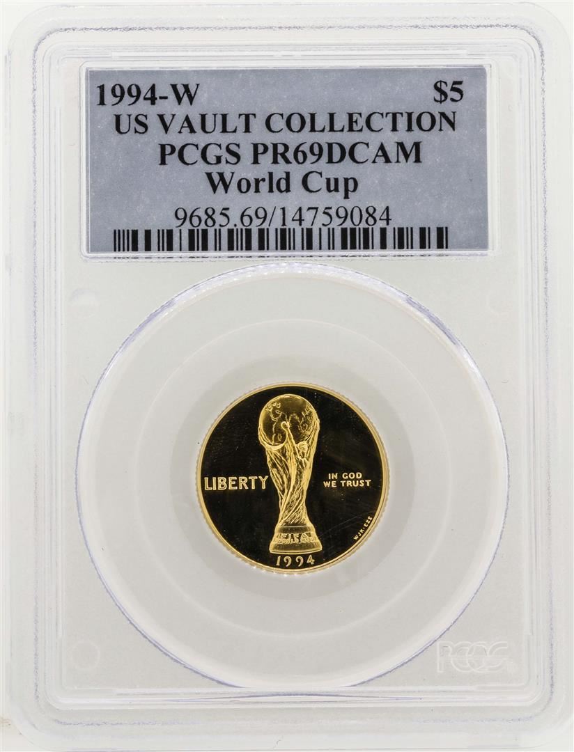 One 1994-W $5 US Vault Collection World Cup Gold Coin PCGS PR69DCAM. PCGS Graded.