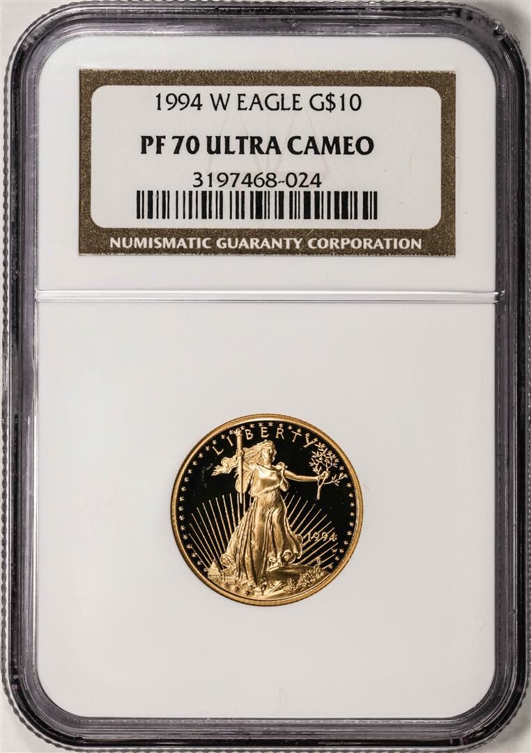 One 1994-W Proof $10 American Gold Eagle Coin NGC PF70 Ultra Cameo. NGC Certified.