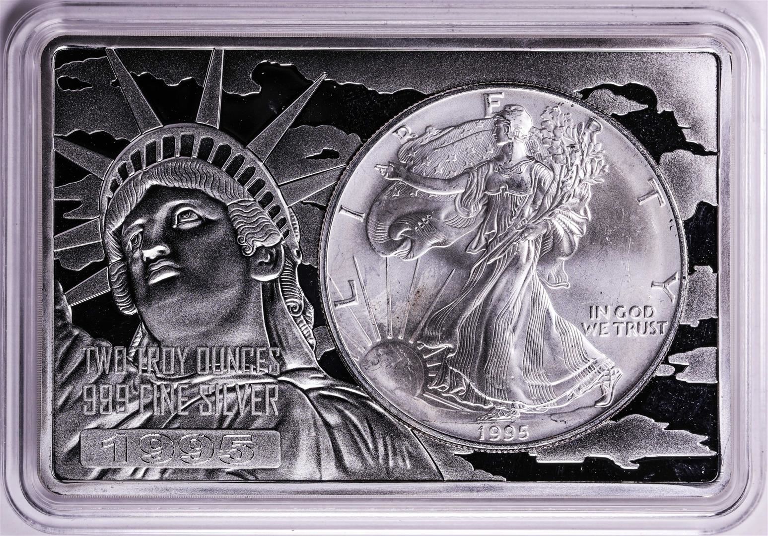 One 1995 $1 American Silver Eagle Coin & 2oz Silver Bar Set.