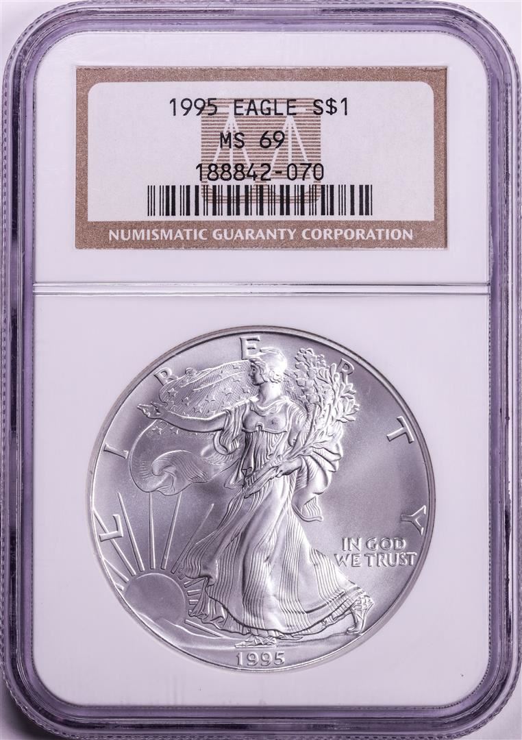 One 1995 $1 American Silver Eagle Coin NGC MS69. NGC Certified.