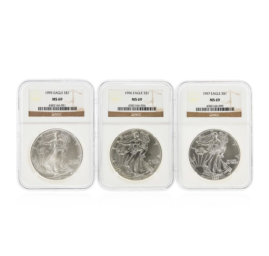 One 1995-1997 $1 American Silver Eagle Coin Set NGC MS69. NGC Certified.