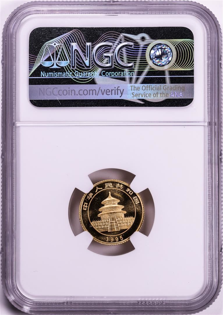 One 1995 Large Date China 10 Yuan Panda 1/10 oz. Gold Coin NGC MS69. NGC Certified.