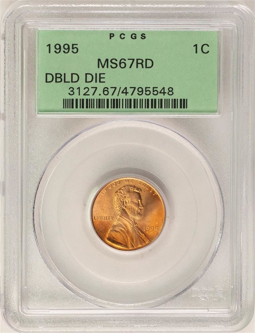 One 1995 Lincoln Wheat Cent Coin PCGS MS67RD Double Die. PCGS Graded.