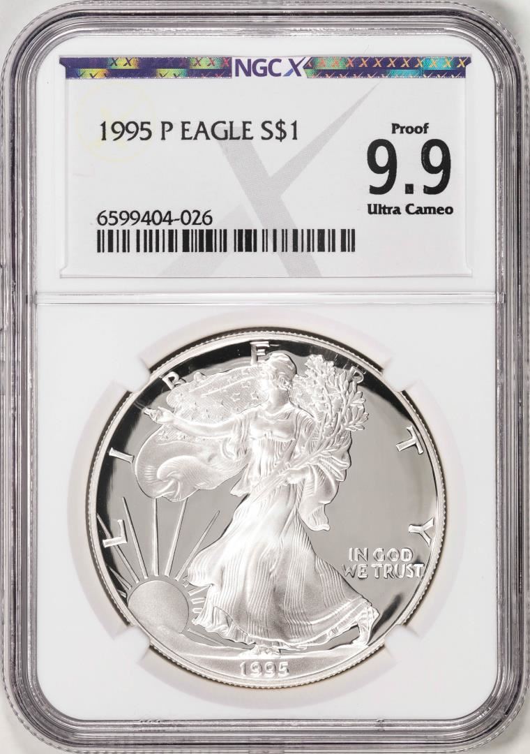 One 1995-P $1 American Silver Eagle Coin NGCX Proof 9.9 Ultra Cameo. NGC Certified.