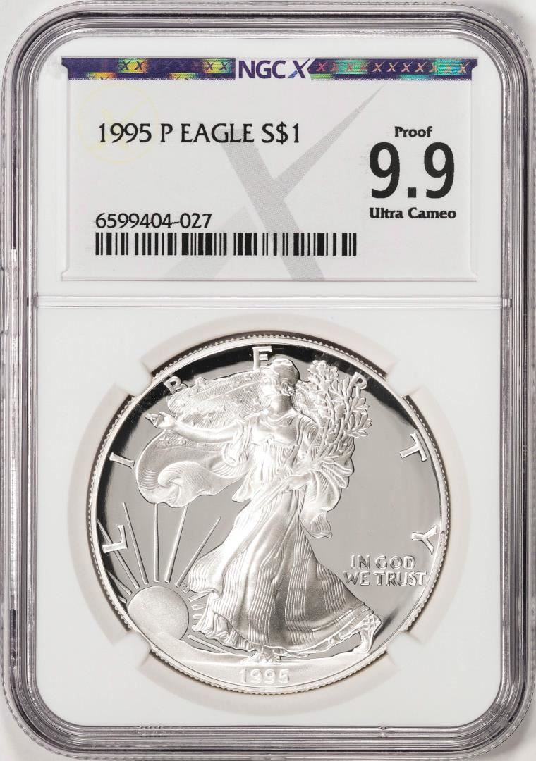 One 1995-P $1 Proof American Silver Eagle Coin NGCX Proof 9.9 Ultra Cameo. NGCX Certified.
