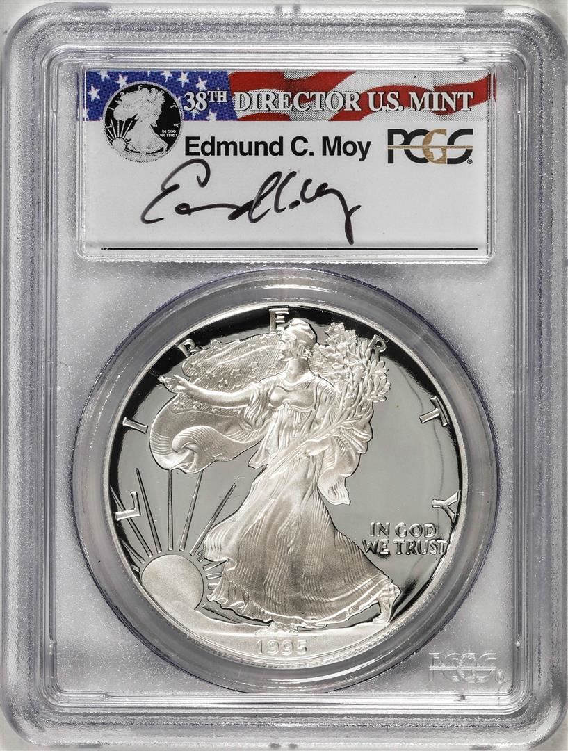 1995-P $1 Proof American Silver Eagle Coin PCGS PR69DCAM Edmund Moy Signature