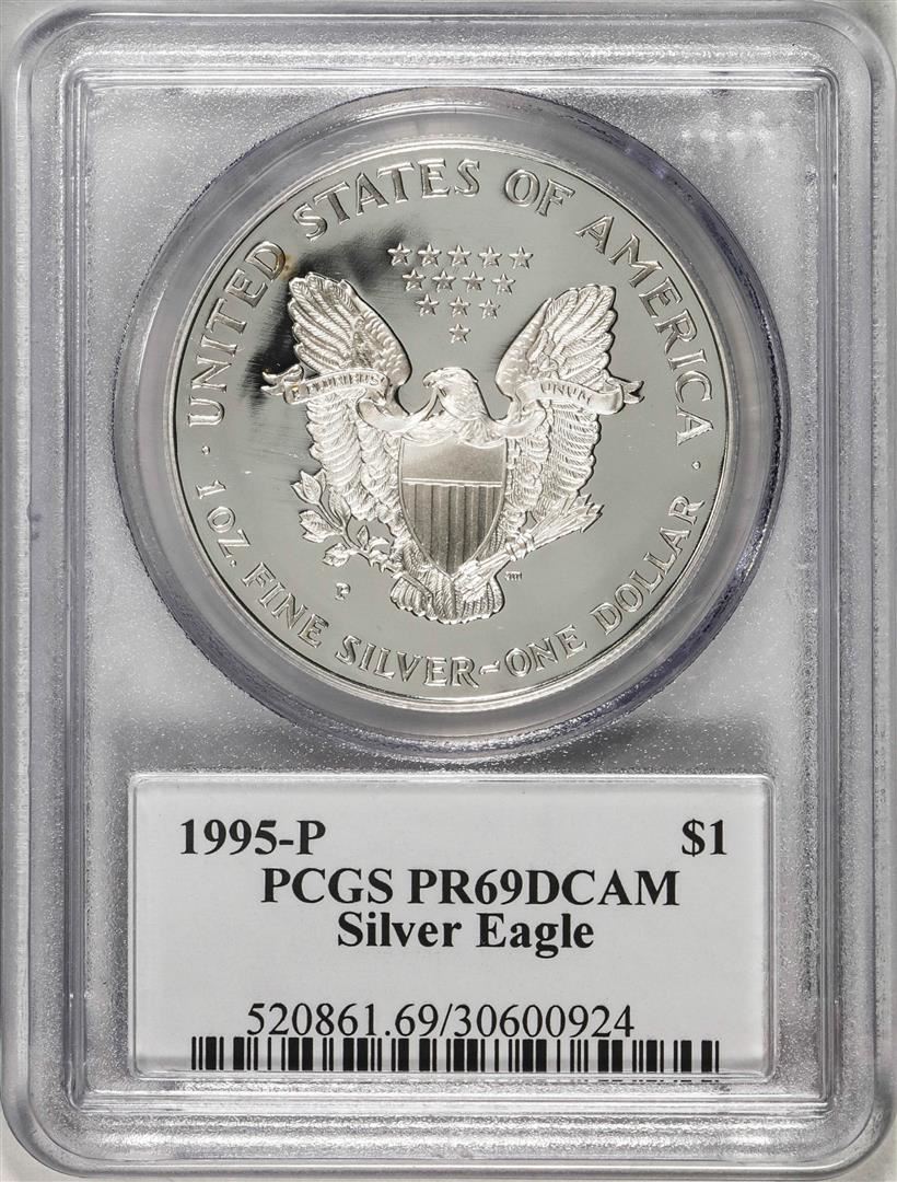 One 1995-P $1 Proof American Silver Eagle Coin PCGS PR69DCAM Edmund Moy Signature. PCGS Graded.