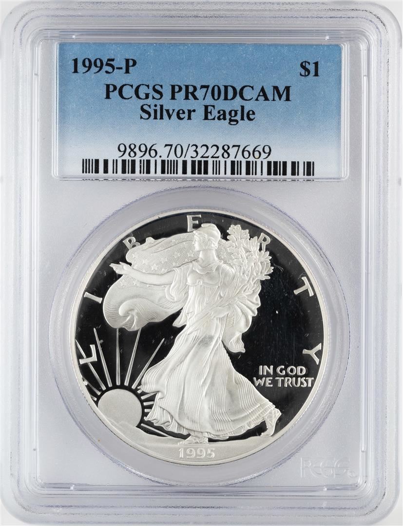 One 1995-P $1 Proof American Silver Eagle Coin PCGS PR70DCAM. PCGS Graded.