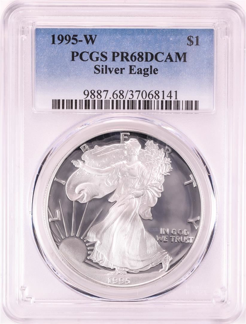 One 1995-W $1 Proof American Silver Eagle Coin PCGS PR68DCAM. PCGS Graded.