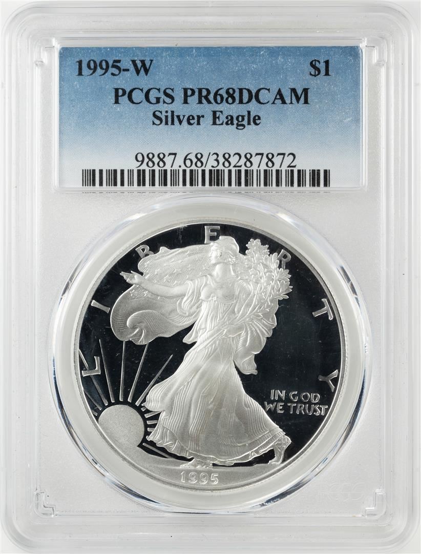 One 1995-W $1 Proof American Silver Eagle Coin PCGS PR68DCAM. PCGS Graded.